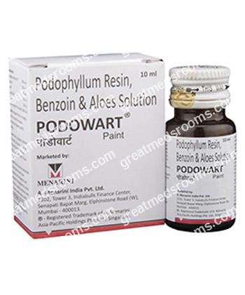 Podowart is a prescription topical medication primarily used to treat skin warts. The main active ingredient is podophyllum resin (20% w/v), which is made from the roots of the American mandrake and has been used to remove warts since at least the 1820s. Podowart also includes benzoin (10% w/v), which is a gum resin from the trunks of trees in the Styrax family, and aloe vera (2% w/v), which is a plant similar to a cactus that grows in hot climates and is generally used to alleviate sunburn.