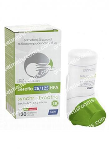 Seroflo Inhaler is applied in treatment of asthma and chronic obstructive pulmonary disease (COPD) associated with chronic bronchitis. It is sold in form of an oral inhaler and contains 2 medicines, fluticasone propionate (Flovent) and salmeterol (Serevent). Fluticasone propionate is a corticosteroid substance which reduces inflammation in the lungs. Salmeterol, a beta2-agonist (LABA), relaxes smooth muscles of bronchi, widens them and has prolonged activity. Mutual work of the two ingredients prevents wheezing and shortness of breath.