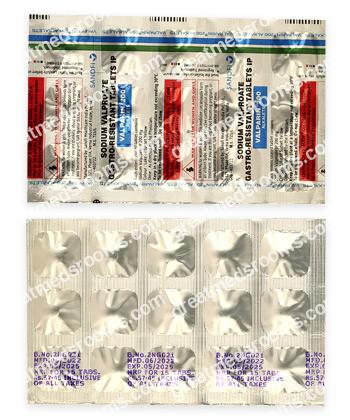 Valparin is used to treat convulsions, migraines and bipolar disorder. Exact mechanisms of its action are unknown. It is supposed that Valparin increases levels of the neurotransmitter gamma-aminobutyric acid (GABA) in the brain.