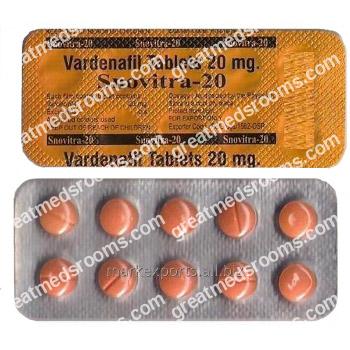 Vardenafil is an oral drug used to treat erectile dysfunction. Sexual stimulation causes the production and release of nitric oxide from the nerves endings of the cavernous bodies of the penis hereby activating enzyme guanylate cyclase. Guanylate cyclase in its turn is responsible for production of cyclic guanosine monophosphate (cGMP). The cGMP causes widening and relaxation of the blood vessels carrying blood to the penis. Vardenafil prevents phosphodiesterase-5 enzyme from destroying cGMP and thus helps to support blood flow to the penis.