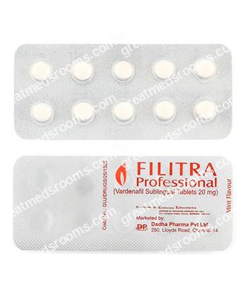 Filitra Professional is an advanced formulation of Vardenafil, designed to treat erectile dysfunction (ED) in men. It helps increase blood flow to the penis, enabling a strong and lasting erection when sexually aroused. Unlike standard tablets, this version is made for sublingual use (dissolves under the tongue), allowing for faster absorption and quicker results. It’s ideal for men seeking reliable performance with a rapid onset of action.