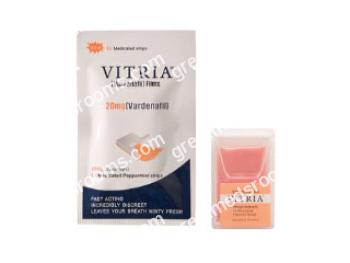 Vitria is an effective medication for treatment of erectile dysfunction. It contains Vardenafil HCl. The drug is easily absorbed directly into the vascular system thus causing faster effect which lasts for 12 hours. It is recommended in the patients with problems of swallowing as Vitria easily dissolves. Its action is not subjected to influence of high fat foods or liquids. Its active substance, Vardenafil, is a phosphodiesterase-5 inhibitor which helps to support blood flow to the penis. The medication does not work without sexual stimulation.